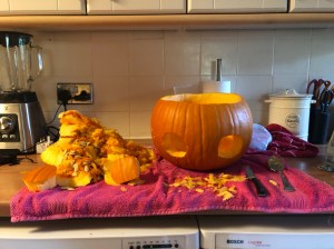 Took them back to my parents house and I started to carve the huge pumpkin!
