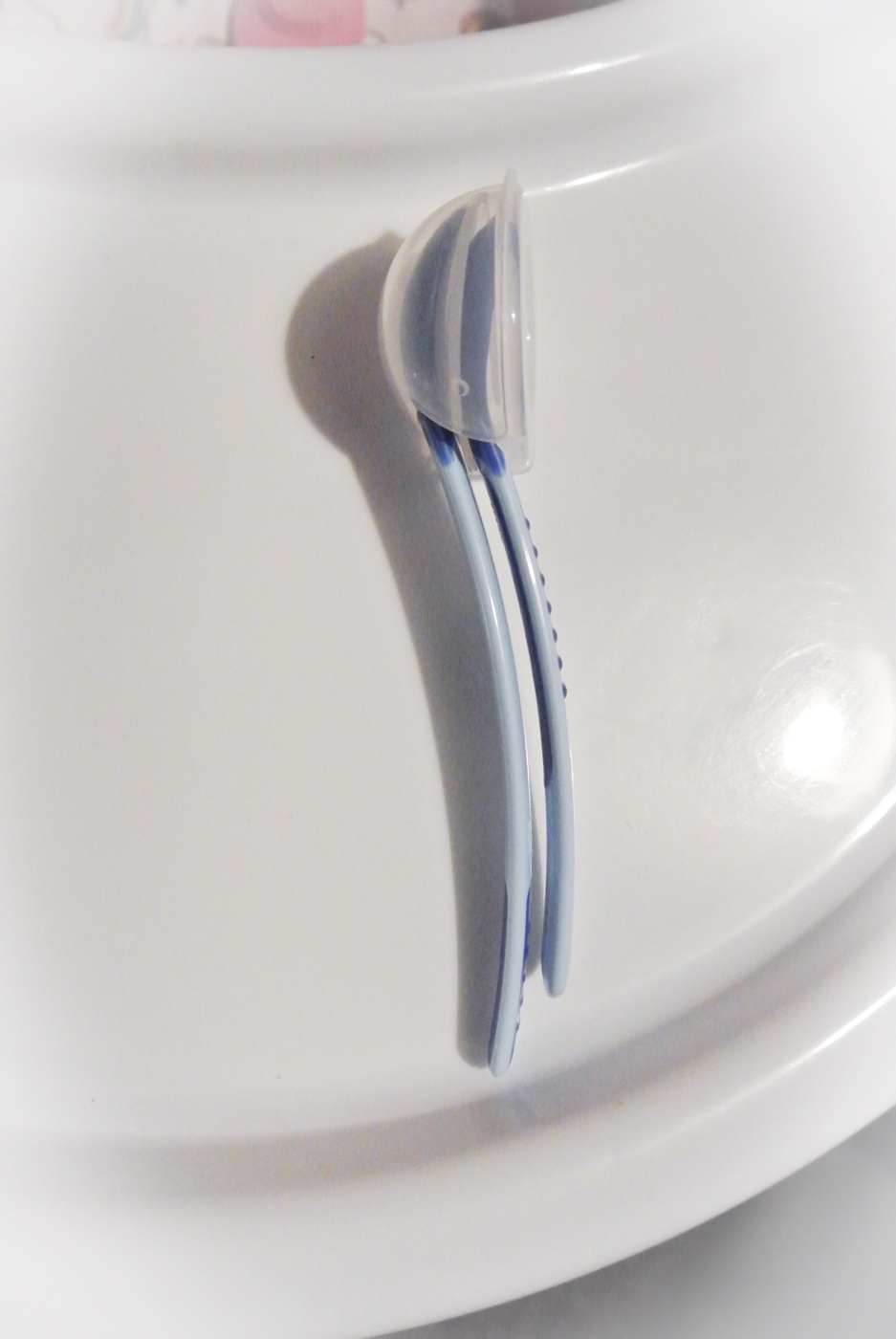 Next up we have the changing coloured spoons! I was super excited to try these out as I was forever burning my lips, the pack comes with 2 different sizes which is great and also a protector if you are taking it out and about, it also fits both of the spoons! This is such a must have for your changing bag! We have used them a handful of times and haven’t stained as of yet! We were super chuffed with these.