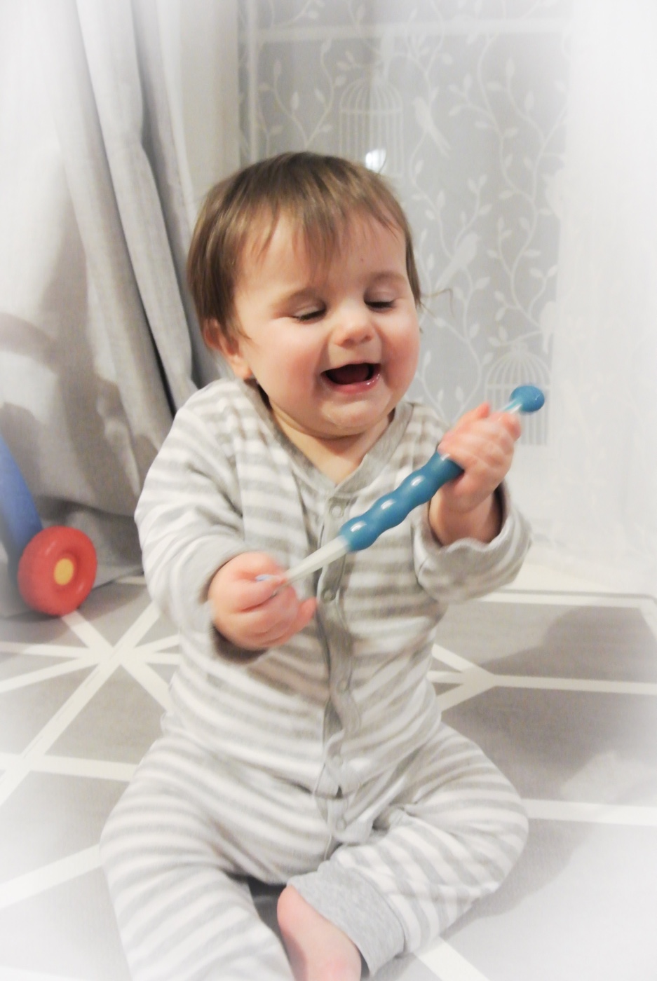 Last but not least Phoebes first tooth brush! – yes we finally have a toothypeg pop through and as you can see she is having a good chomp on it! This pack also comes with two different sizes one has a gun massager on the other end which is super handy! Phoebe found it easy to hold and super easy to pop into her mouth! Cannot wait to add brushing her toothypeg into our bedtime routine!